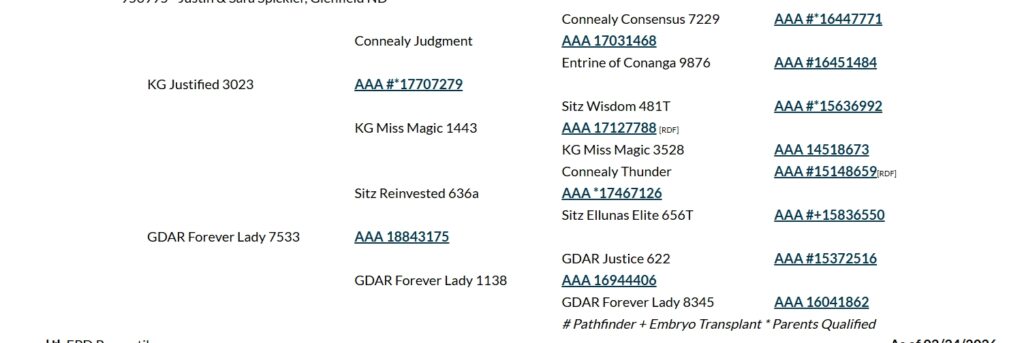 545 is a flush sibling to the 559 cow, he has 80 calves with a weaning ratio of 101, 23 with a yearling ratio of 103 and 4 daughters with a milking ratio of 104.